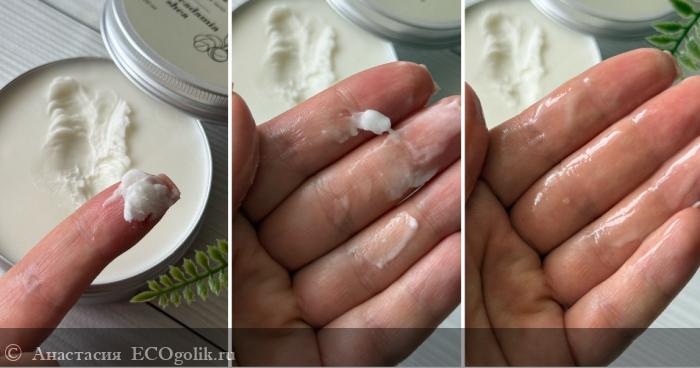 Консистенция хоть и плотная, но совсем не твердая и быстро тает от тепла кожи: