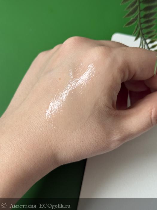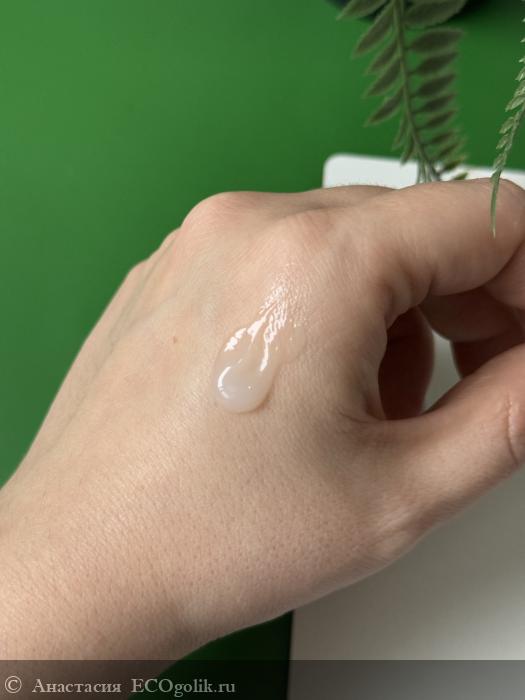 Текстура очень приятная, не жидкая. Что - то между кремом и гелем, но маслянистое)