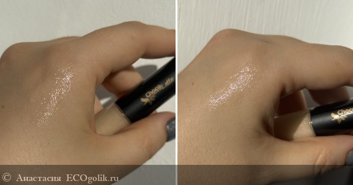Собственно оттенок блеска - это нежный перламутровый отлив, придающий сияние