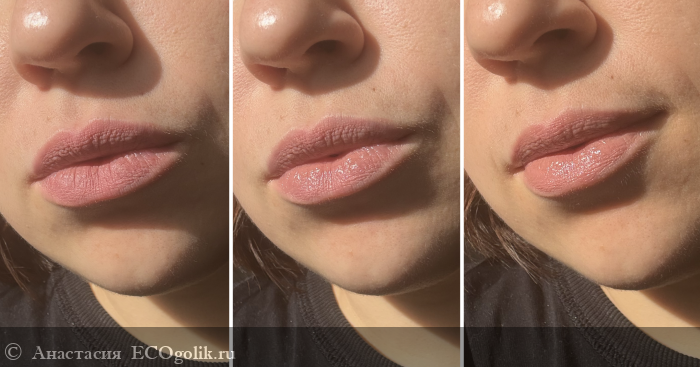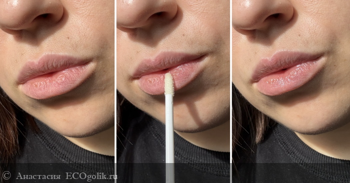 Еще наглядный коллаж, как блеск улучшает состояние кожи губ, причем комфорт остается даже после того как блеск стерся)