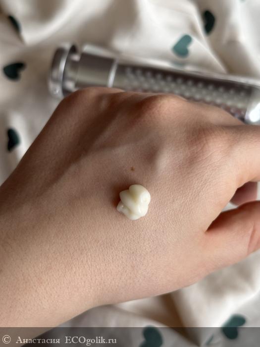 Текстура у крема не плотная, она скорее невесомая, гелево-флюидная: