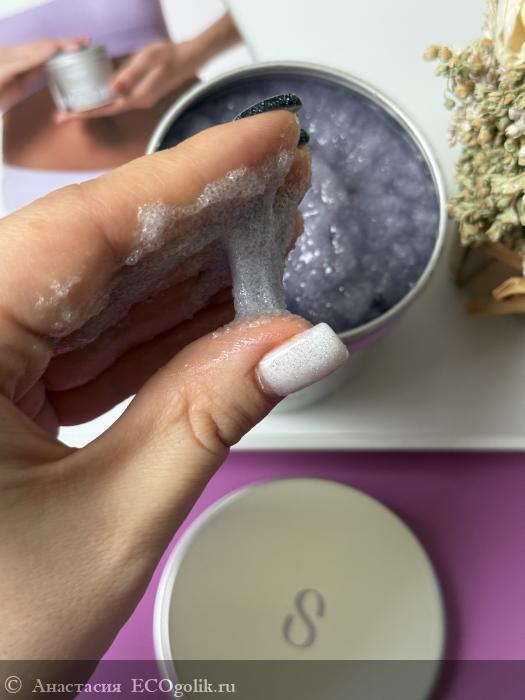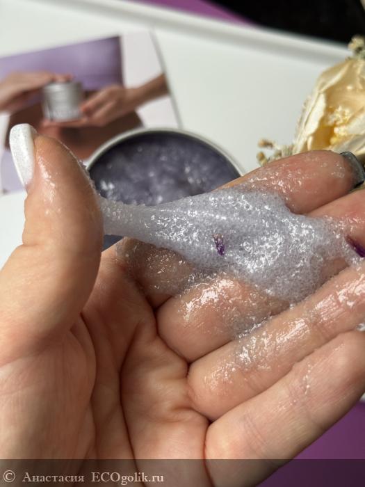 Удобная «тянущаяся» консистенция не рассыпается при нанесении и экономно расходуется, а живой аромат лаванды создает атмосферу природного СПА!
