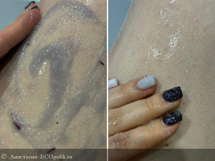 По эффекту скраб не жесткий, довольно нежный) тает на коже и бережно ее массирует: