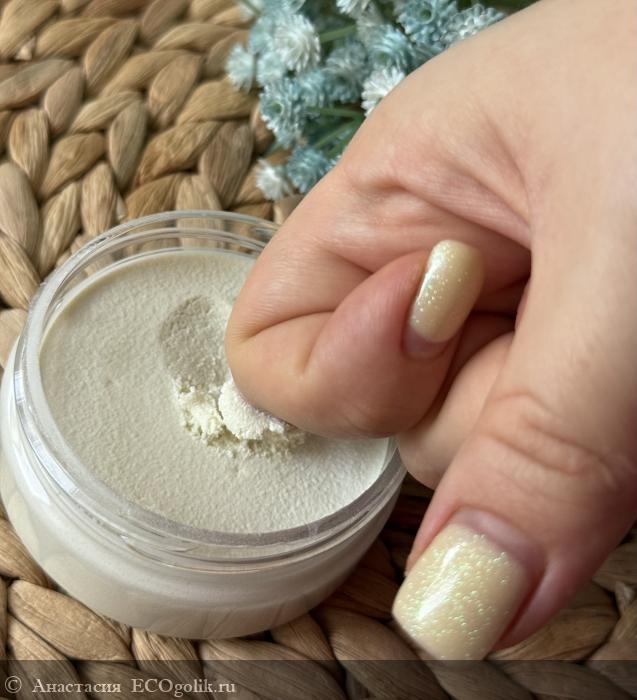 Дезодорант дает комфортное ощущение сухой, свежей кожи и ощутимый охлаждающий эффект) На финише остаются немного комочки, которые образовались при растирании. Для меня это в целом не критично, и на работу дезодоранта не влияет)