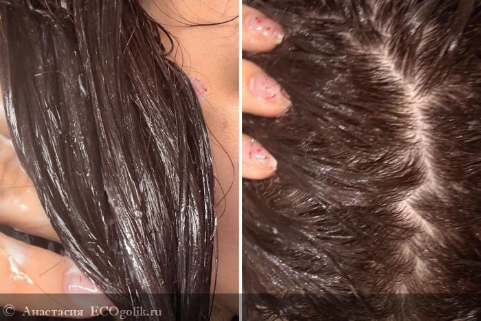 На ощупь волосы, еще будучи мокрыми, становятся более послушными и ухоженными без какого - либо утяжеления)