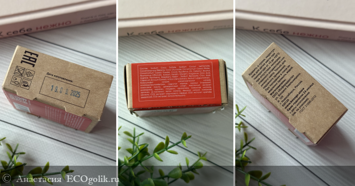 В коробочке сам брусок красивого цвета с приятным парфюмированным ароматом:
