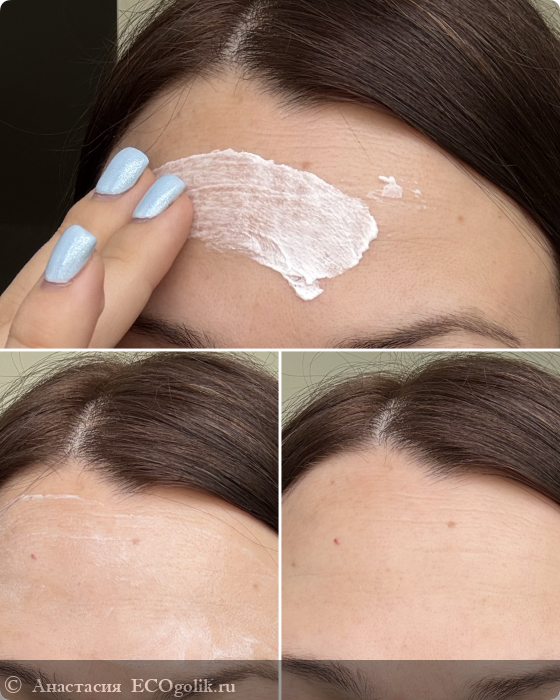 Пока я растирала это количество крема, он скатался, прилип к бровям и волосам, оставил белые полосы
