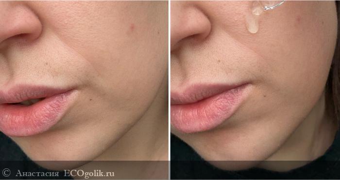 Как я уже сказала, сыворотка в применении очень комфортна, быстро впитывается и не оставляет неприятных ощущений после себя. Увлажняет и чуть тонизирует кожу.