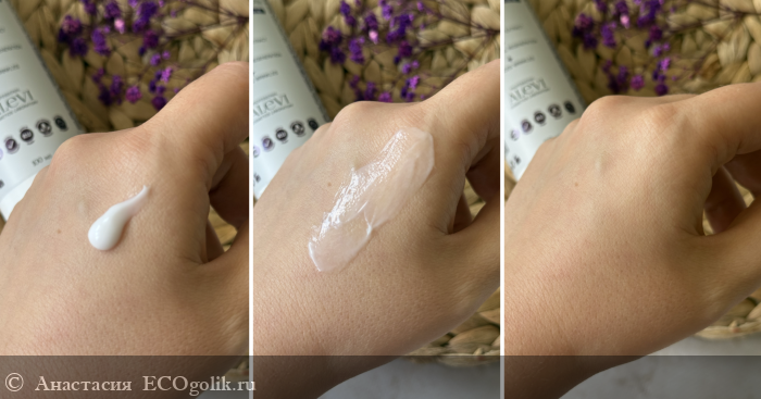 По коже распределяется легко и быстро, не оставляет липкости, не ощущается тяжести после впитывания, хотя крем питательный.