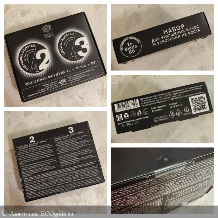 Решила не останавливаться, ведь проблема не решается за пару недель, приобрела набор ампул для утолщения и ускорения роста волос от Nano organic.
