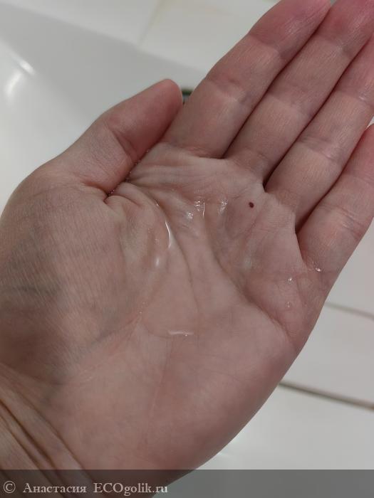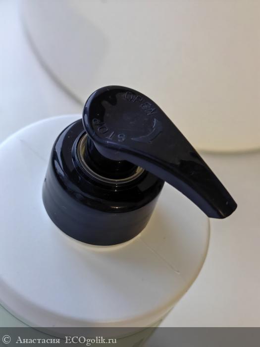 Дозатор выдаёт оптимальное количество для разового применения. По органолептике жидкое мыло водянистой консистенции, прозрачное с приятным ароматом лимонных леденцов.