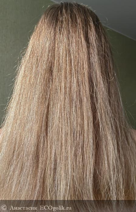После того, как я помыла голову и высушила естественно образом, я не использую фен, заметила, что волос стал значительно мягче, в дальнейшем легла спать, и на следующий день, проснувшись потрога свои волосы, и обомлела - вот тогда я оценила в полной мере эффект, волос стал настолько мягкий, знаете, как у маленьких детей, как пушок, он стал гладкий, кончики супер ухоженные. Те участки, которые у меня промелированы, они по качеству не уступают моим "родным" волосам, неокрашенным.