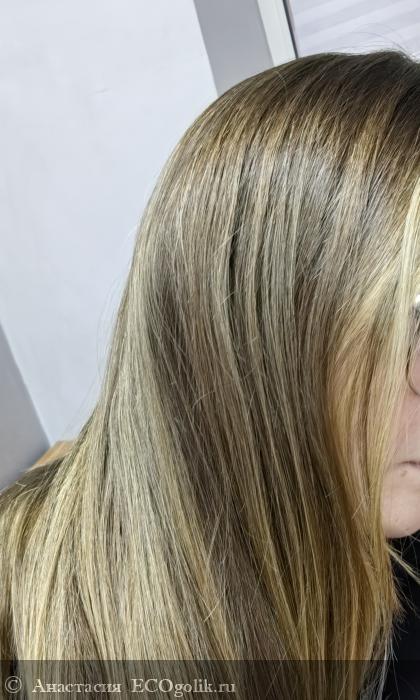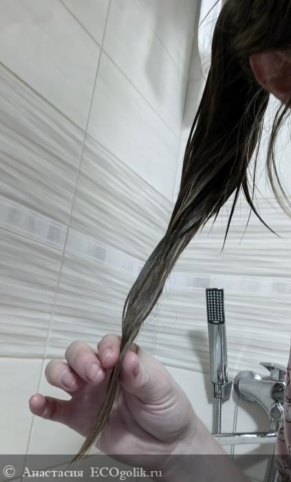 Первый раз у меня был супер загруженный день, но попробовать новинку уж очень хотелось и я решила немножко сэкономить время - сделала высокий хвост и нанесла только на кончики волос, выдержала определённое время и помыла голову как обычно.