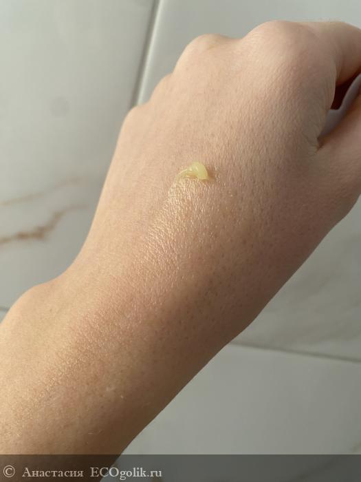Бальзам тает от прикосновения с теплой кожей, хорошо впитывается, но немного оставляет жирный блеск.