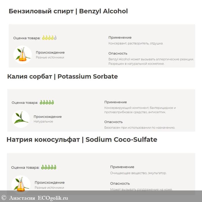 Этот состав без парабенов, сульфатов и красителей, массовая доля компонентов природного происхождения в продукте - 98%. Одобрен сайтом ECOgolic.ru