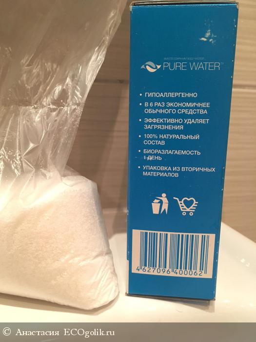 - Натуральный антинакипин PURE WATER ТМ полностью выполаскивается водой. Не наносит вреда окружающей среде и здоровью. Биоразлагаемость 1 день.