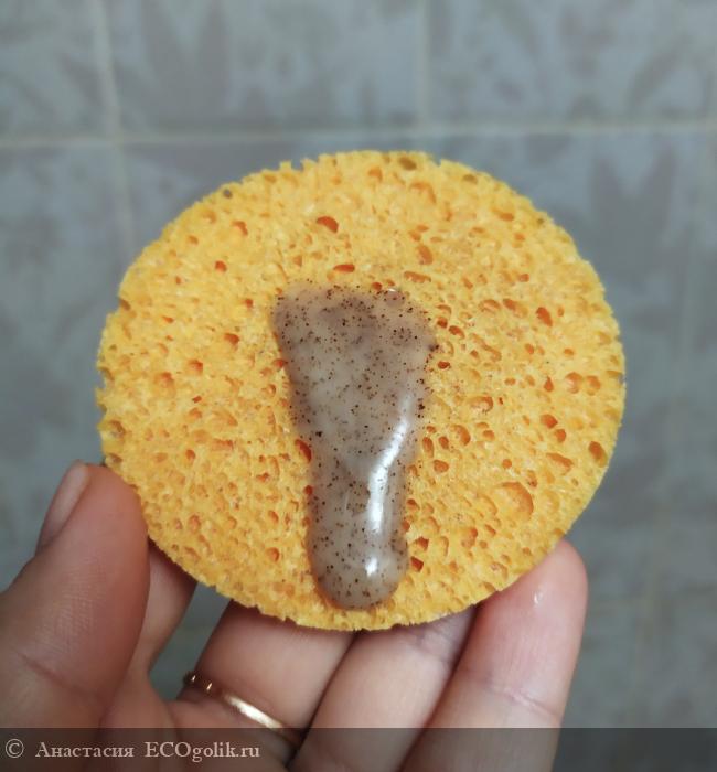 Часто использую с таким спонжем, но больше подойдет не такой, а резиновый, т.к. в отверстия частички проваливаются и никакого скрабирующего эффекта нет.