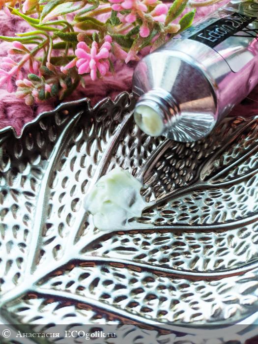 - Запах у крема едва уловим, немного резкий. Напоминает цветочный аромат с ноткой миндаля.