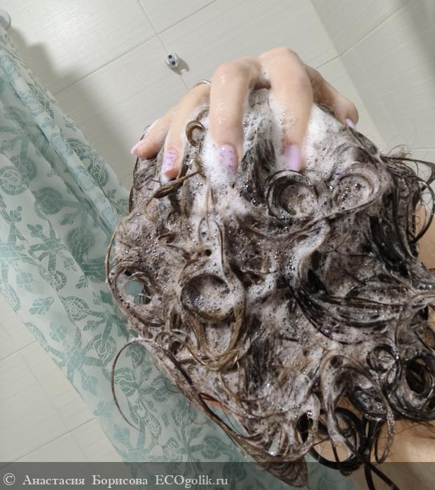 Применение шампуня приносит настоящее удовольствие и максимальный эффект: Наношу небольшое количество шампуня на влажные волосы, равномерно распределяя средство по всей длине. Шампунь мгновенно образует легкую воздушную пену, которую удобно массировать пальцами, достигая глубокого очищения и удаления загрязнений. Хорошо смываю теплой водой и наношу кондиционер.