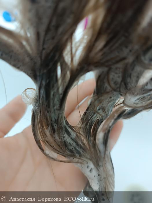 Я смачиваю теплой водой волосы, чтобы они были полностью влажными. Выдавливаю небольшое количество на ладонь и мягко втираю сначала в корни, потом по всей длине волос, процедура наслаждения длится 3-4 минутки, потом тщательно смываю