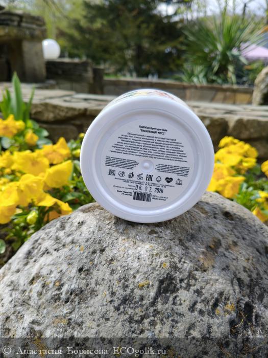 Крем имеет белый цвет и среднюю густоту, благодаря чему он легко распределяется по коже, не растекается и не оставляет липкости. Текстура воздушная, нежная, при нанесении буквально тает, мгновенно впитываясь и окутывая кожу ощущением комфорта. Лёгкий, приятный аромат ванили делает использование крема особенно приятным, создавая атмосферу уюта и свежести.
