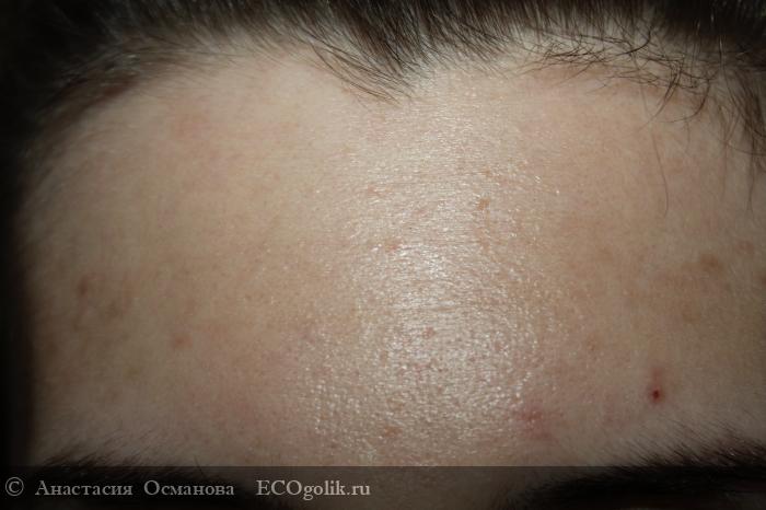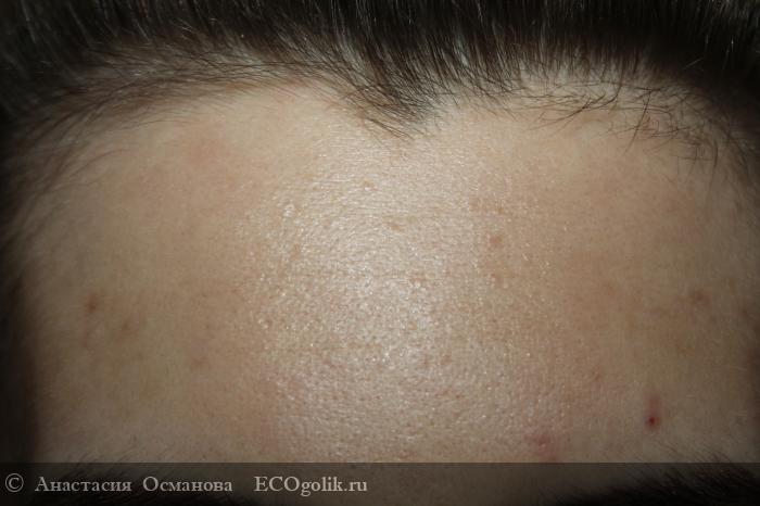 По эффекту мягкой и напитанной кожи она мне немного напоминает янтарную маску от Левраны. И насколько я помню та маска не была очищающей, а была именно тонизирующей и выравнивающей тон. Поэтому мне стало интересно, как маска Детокс ведет себя на самом проблемном участке - на лбу.
