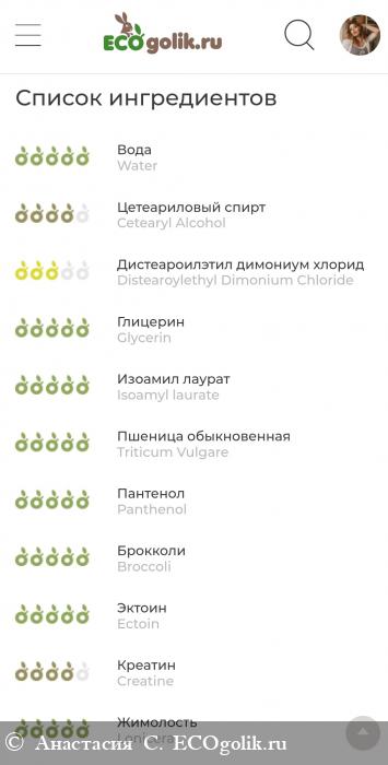 По традиции проверим состав маски на этом чудесном сайте. Состав большой, серьезный, поэтому я выложу фото анализа первых 10 ингредиентов - не вижу смысла смотреть 20 или 30 компонент, т.к. это уже совсем небольшое количество вещества к общему объему продукта.