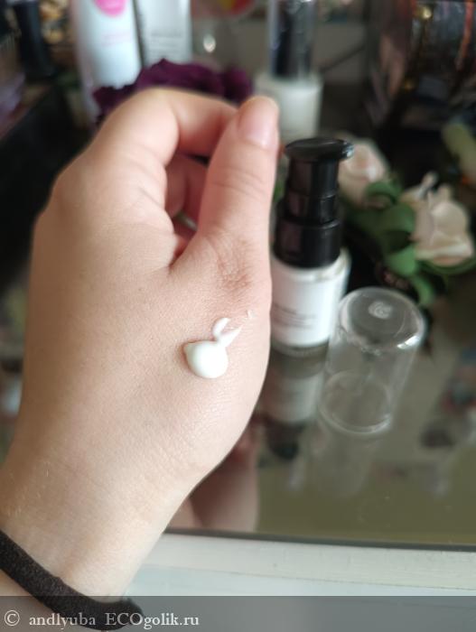 Второй плюс это упаковка. Сам тюбик стеклянный и имеет дозатор. Обожаю такие тюбики! Очень удобно дозировать крем и контакт с кожей и кислородом минимальный(что сильно продлевает полезный срок использования).
