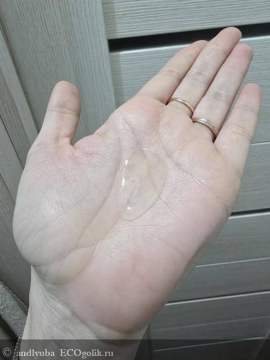 По консистенции он очень интересный. Он отличается от всех шампуней что я пробовала за всю мою жизнь (даже корейских и из массмаркета). Консистенция у него гелевая! И честно, я считаю что это имеет практическое значение! Вот когда наливаешь в ладошку шампунь и растираешь, то обязательно он проливается сквозь пальцы, а тут такого нет. Моя жаба жадная это очень оценила.