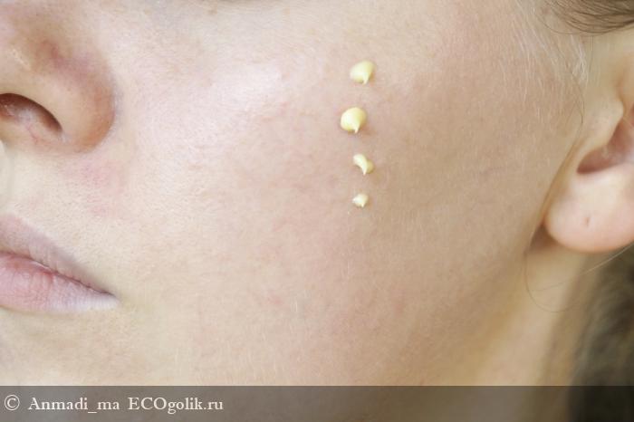 Крем имеет непривычный желтоватый оттенок. Текстура у него лёгкая, очень приятная.