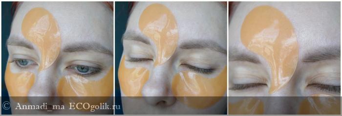 Текстура: сами по себе патчи гидрогелевые, они полностью растворимы в воде. Лёгкие и комфортные, принимают любую форму, поэтому подходят под любой разрез глаз и на любую другую часть лица. А вот плавают они в эссенции - это прозрачная сыворотка, в меру жидковата, но имеет плотную текстуру, абсолютно не липкая и не тяжёлая. Эссенции много, даже столбики поплыли, изначально они были уложены как инь ян.