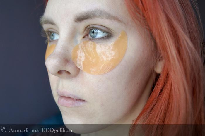В остальное время они отлично держатся на коже. Каплевидная форма патча хорошо подходит под мой разрез глаз. Но также патчи накладываются на любой другой участок кожи. Использовать их можно любой стороной - как вам удобнее. Мне больше нравится широкой стороной к переносице.
