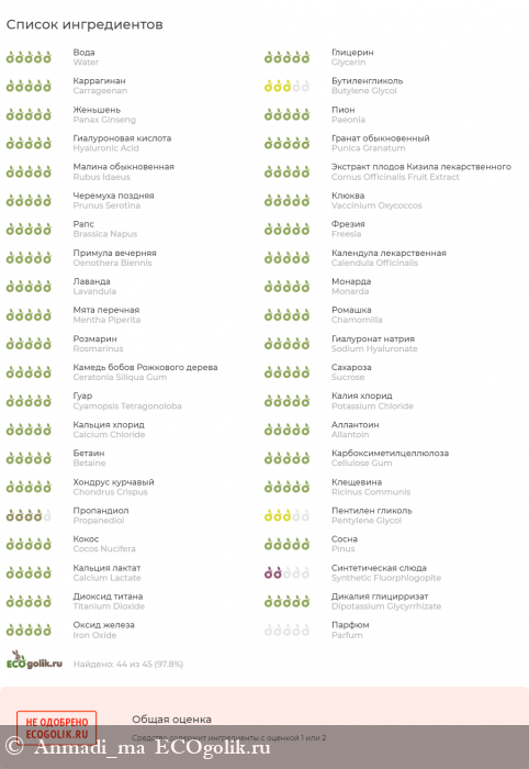 Я люблю этот бренд за богатые составы. Производитель не скупится на полезные компоненты. Да, в этих патчах он не полностью натуральный, сервис проверки составов Экоголика не одобрил его из-за слюды.