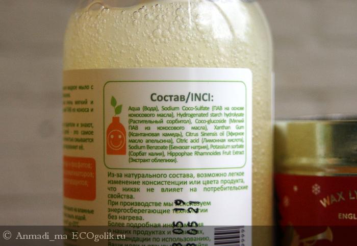 Мне вообще в принципе очень импонируют цитрусы, как в еде, так и в уходе и ароматах. Но натуральная косметика это самый настоящий кот в мешке. Кофейное мыло может пахнуть травами, а мятный бальзам ванилью или какао. Но тут на 100% попадание! Сладкий апельсин оказался действительно сладким апельсином. И я готова бесконечно хвалить мыло за аромат, пенообразование и эффективность в целом, но и немножко ругать за упаковку!