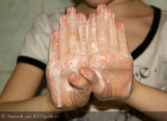 Например тут мы просто вспенили 1 порцию = (1 нажатие дозатора) во влажных руках: