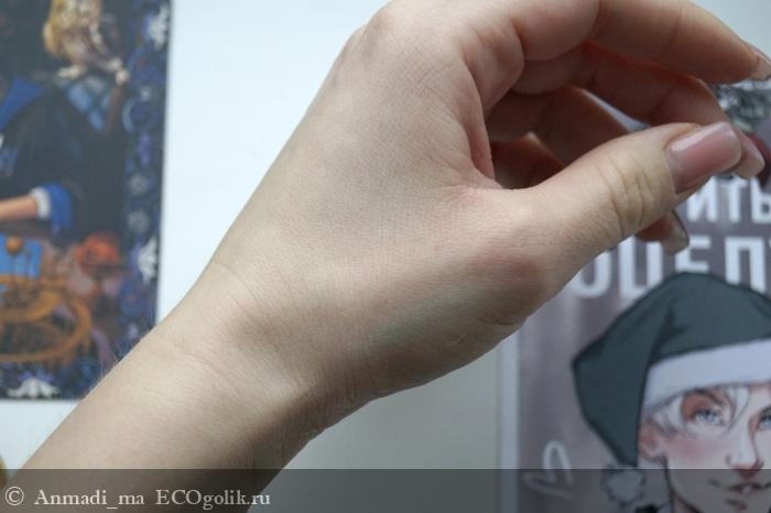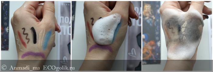 Что касается более яркой и стойкой косметики, для большей показательности отзыва, чтобы он был полезен всем без исключения, я сделала затест на свотчах. Нанесла умеренно-стойкую косметику, дала ей подсохнуть и нанесла флюид. Помассировала около минуты и протёрла ватным диском, без трения всё смылось на раз-два)