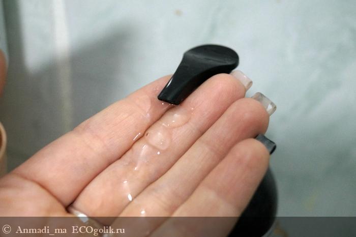 Большое спасибо производителю за наличие носика дозатора, такой формат я считаю самым удобным и практичным. Дозатор тут используется поворотный, при необходимости можно заблокировать. Нажим плавный, он не заедает и не плюётся, дозирует небольшими порциями. Мне на разовое использование хватает двух нажимов!
