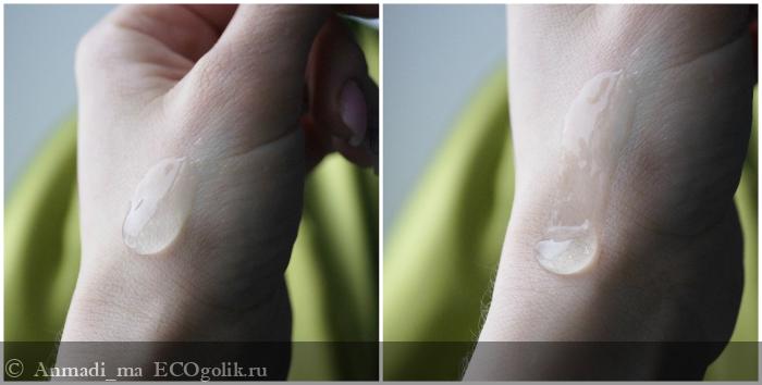 Текстура лёгкая, гелевая, не плотная и не тягучая. Гель абсолютно прозрачный, не мутный, не имеет в себе вкраплений. Я считаю что текстура идеальна для комфортного использования. Гель легко распределяется по коже лица и также легко потом смывается, не оставляя после себя плёночки.