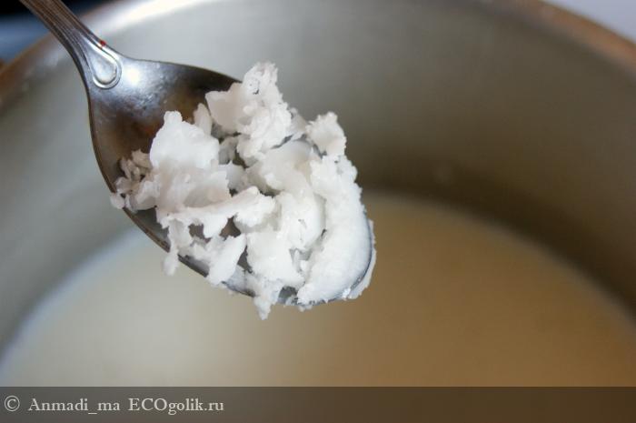 Важно что при уходе кокосовое масло должно быть тёплое, поэтому в этом конкретном случае я грею разовую порцию на водяной бане. Кстати тает оно достаточно долго.