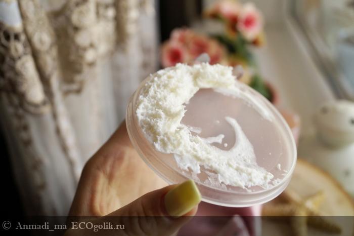 Текстура нежнейшая, муссовая, очень лёгкая и так приятно похрустывающая во время соприкосновения. Она очень воздушная, густая - в том плане что не течёт, не капает с волос и держит свою форму в баночке - в прямом смысле слова - ложка стоит)))