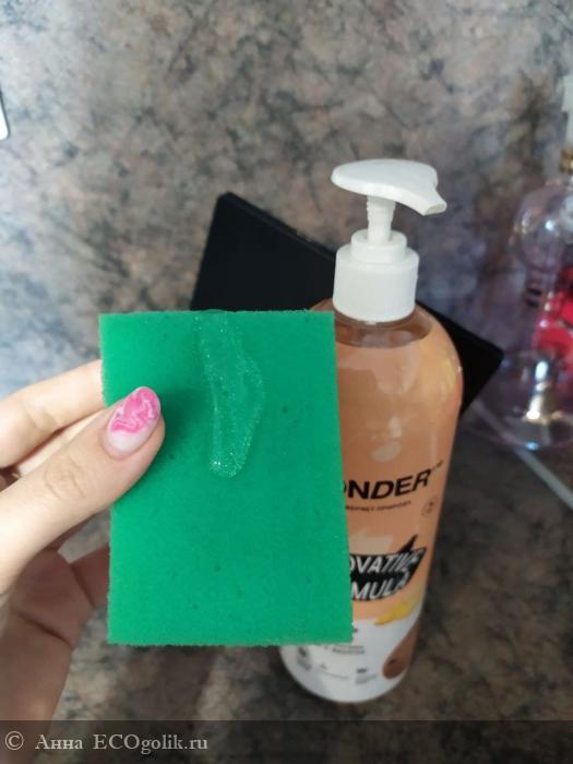 Сливочные фрукты – это аромат экогеля для мытья посуды. Не стандартный лимон, а вот прямо сливочные фрукты. Пахнет приятно, реально запах интересный. По консистенции достаточно густой гель, дает нормальный слой пены (для органики очень даже неплохой). В составе нет химии, а пена действительно хорошая (посмотрите на фото). Легко смывается водой и не оставляет липкого слоя и неприятных запахов - справляется даже с запахом рыбы. После мытья посуда не в разводах.