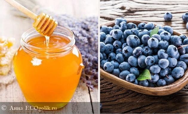 В составе мёда содержится всего два ингредиента: мёд натуральный и ягоды черники.