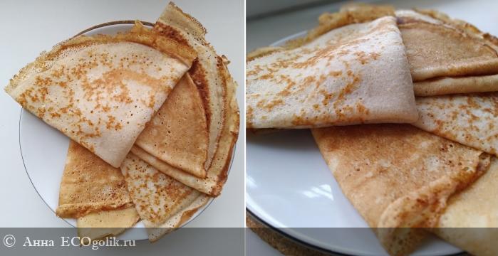 Для чистоты эксперимента готовку блинов я отдала в руки своей мамы, которая готовит блины уже лет 25-30. Прилагаю фото обычных маминых блинчиков для демонстрации, так сказать, её компетенций в данном вопросе: