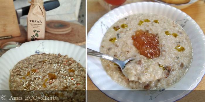 Также хорошо это масло идёт в кашу: будь то несладкая каша, типа гречневой, или сладкая каша на завтрак.