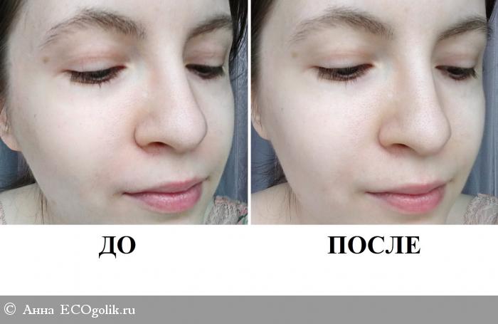 ). Я наношу тоник с помощью распылителя, поднеся его почти вплотную в лицу. Осуществляю три нажатия: на лоб и щёки, после чего сама распределяю средство пальцами.