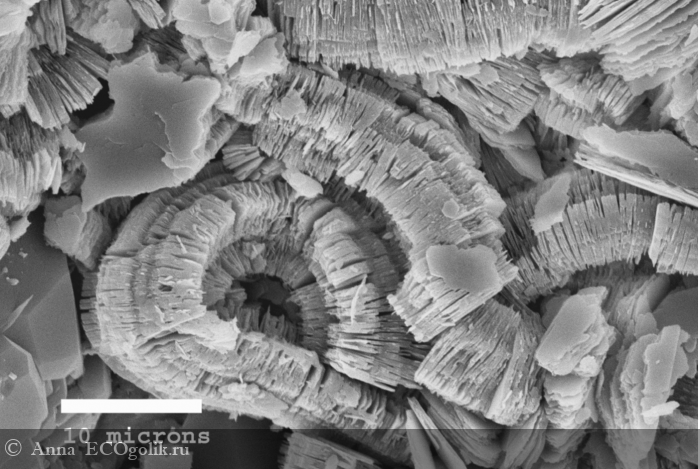 Вот казалось бы глина, просто песочек, а структура у неё очень интересная, пластинчатая) Выглядит все это как-то так) (на примере каолинита)