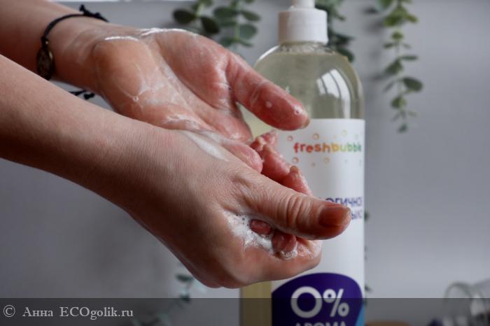 Но сегодня я хочу рассказать о жидком мыле без аромата. Да, у Freshbubble есть линейка «0 % арома», которая идеально подходит для детей и аллергиков.
