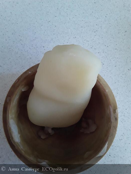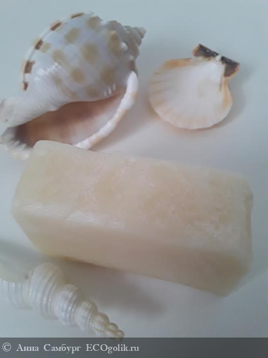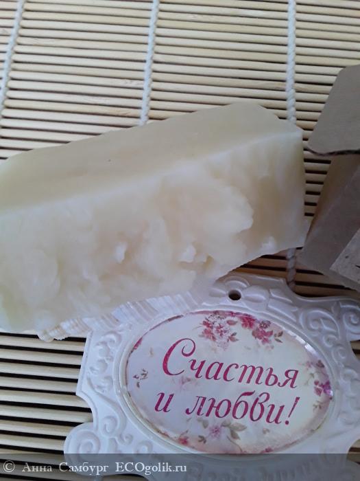 Мне такие брусочки ручной работы нравятся гораздо больше ровных брусков фабричного мыла. На мыле выдавлен логотип бренда, который на моем брусочке едва заметен.