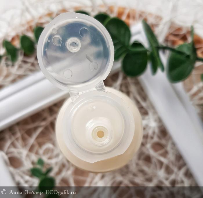 Находится средство в пластиковом флакончике с дозатором флип-топ и представляет собой скорее молочко, чем гель-пенку
