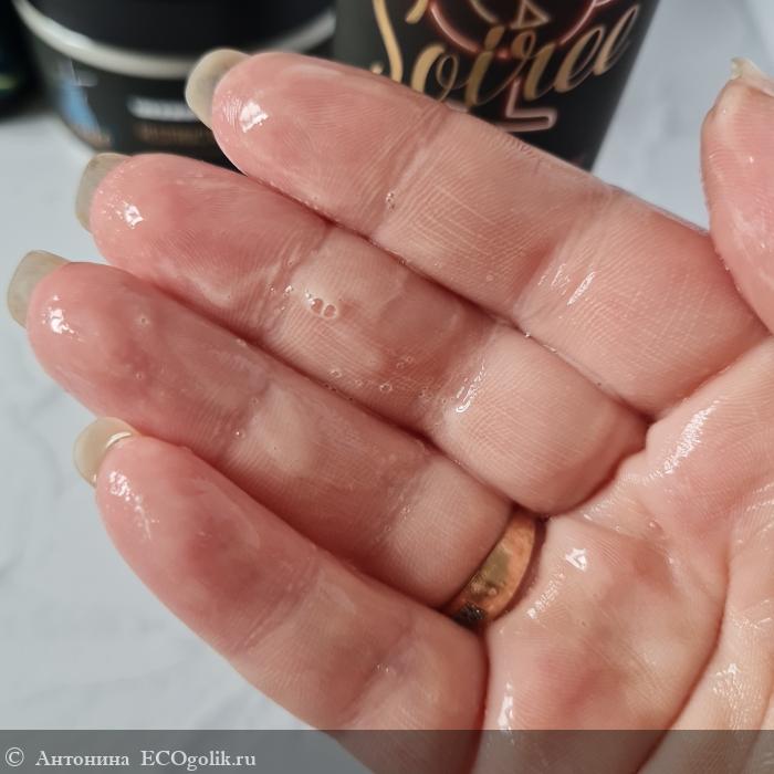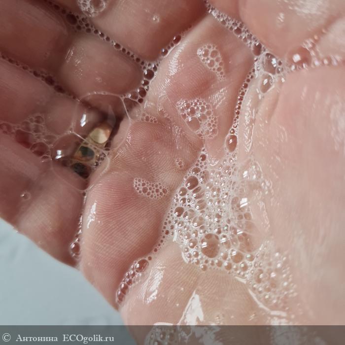 В применении шампунь прост. Он быстро и равномерно распределяется по волосам, очень хорошо пенится и полностью вымывается водой.